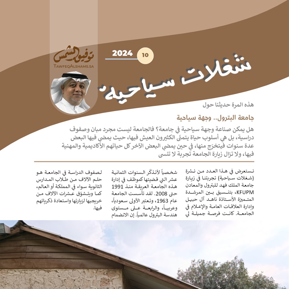 العدد 10 نشرة شغلات سياحية: جامعة البترول.. وجهة سياحية