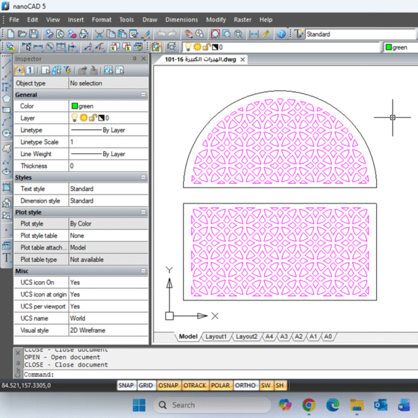 ملاحظة: ستحصلون على ملف رقمي، هندسي، بصيغة DWG، ويمكن فتحه ببرامج الرسم الهندسي مثل AutoCAD وأمثاله. هذا الملف يستفيد به المهندسون والمصممون لتحويل العمل إلى آلات الحفر بالليزر وCNC