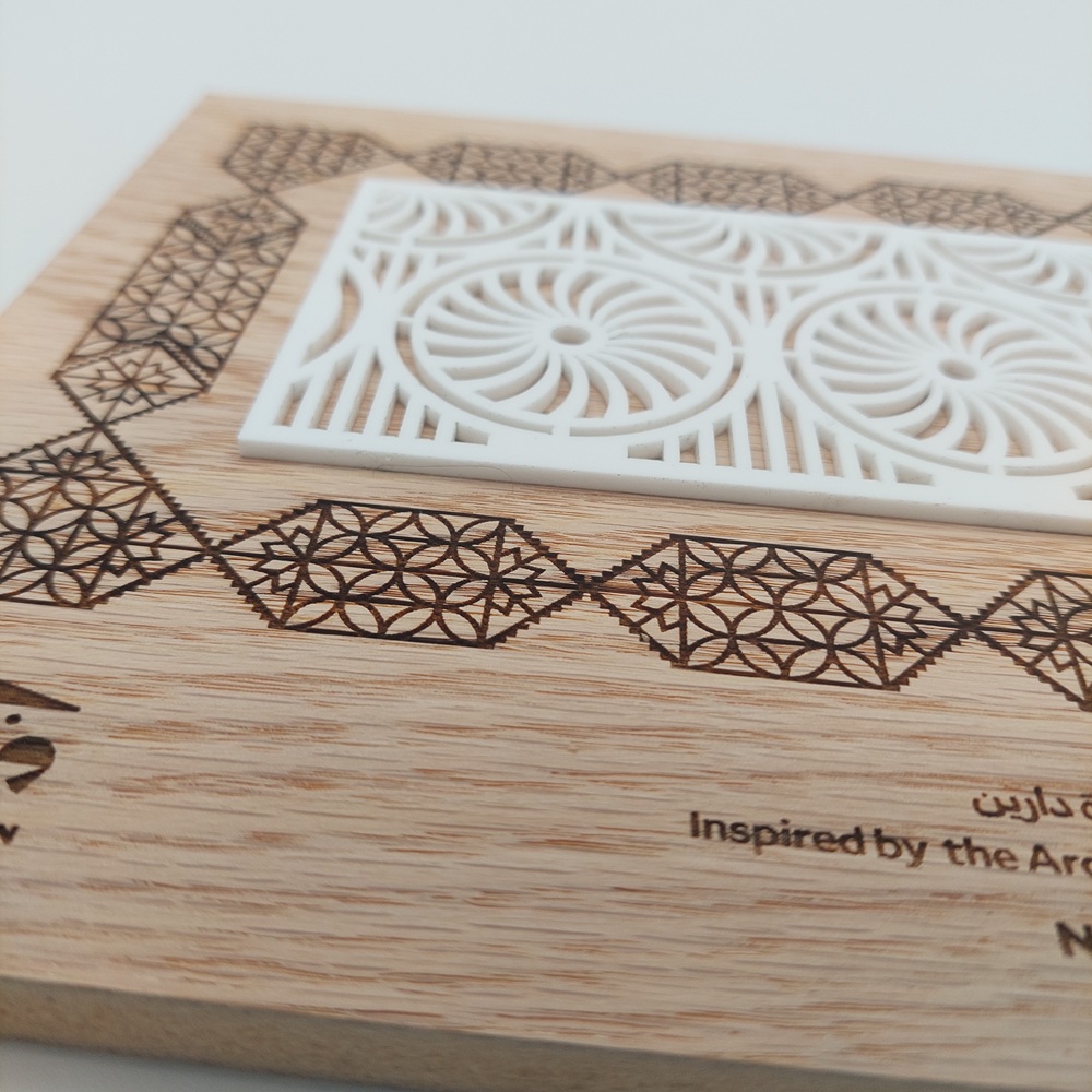 هذا التصميم مستوحى من التراث المعماري في جزيرة دارين، بيت النوخذة راشد البنعلي.